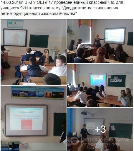 9-11 сынып оқушылары үшін "сыбайлас жемқорлыққа қарсы заңнаманың қалыптасуының жиырма жылдығы" тақырыбында бірыңғай сынып сағаты өткізілді.