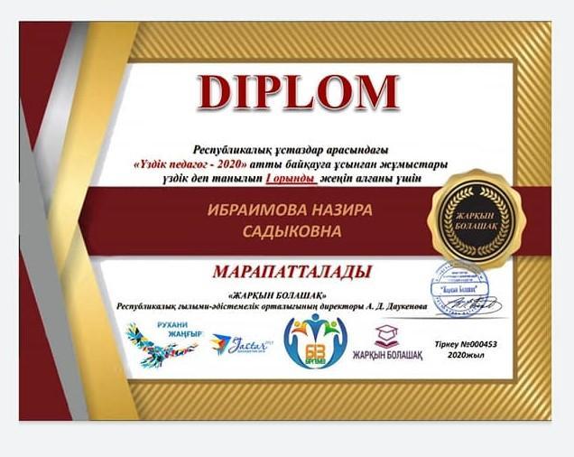 " Жарқын болашақ" и награжден дипломом за 1-ое место!