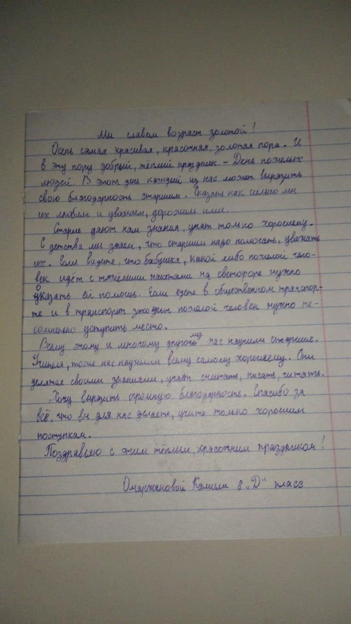 "Біз алтын жасты мадақтаймыз"эссе байқауы. 6 "Д" сынып оқушысы Омаржанова Камилидің шығармасы. Конкурс эссе "Мы славим возраст золотой". Сочинение ученицы 6 "Д" класса Омаржановой Камили.