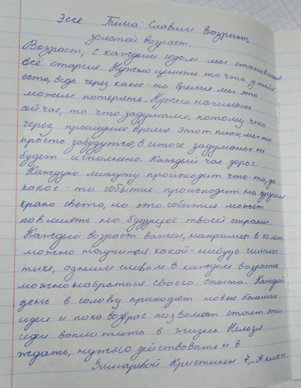 "Біз алтын жасты мадақтаймыз" эссе байқауы 7 "А" сынып оқушысы Зимарева Кристина. Конкурс эссе " Мы славим возраст золотой" ученица 7 "А" класса Зимарева Кристина.
