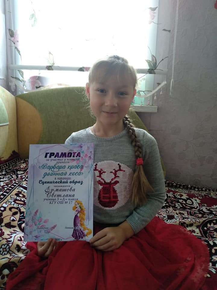 "Варвара краса - длинная коса" байқауының қорытындысы бойынша біздің жеңімпаздар өз грамоталарын алды. По итогам конкурса "Варвара краса - длинная коса" наши победительницы получили свои грамоты.