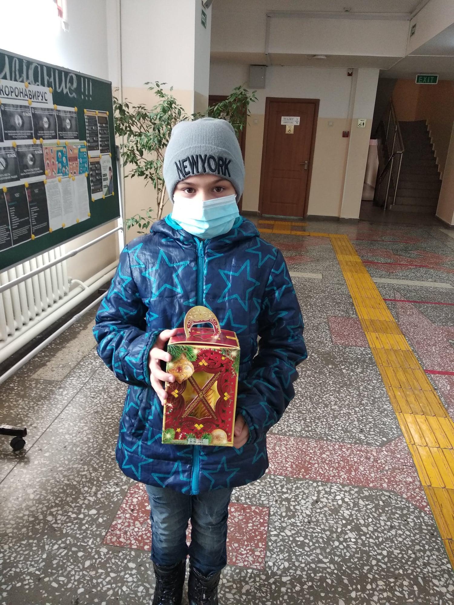 29.12.2020 жылы аз қамтылған отбасылардан және жетім балалар арасынан оқушылар әкімнен жаңа жылдық сыйлықтар алды!29.12.2020 года учащиеся из малообеспеченных семей и из числа детей-сирот получили новогодние подарки от Акима!