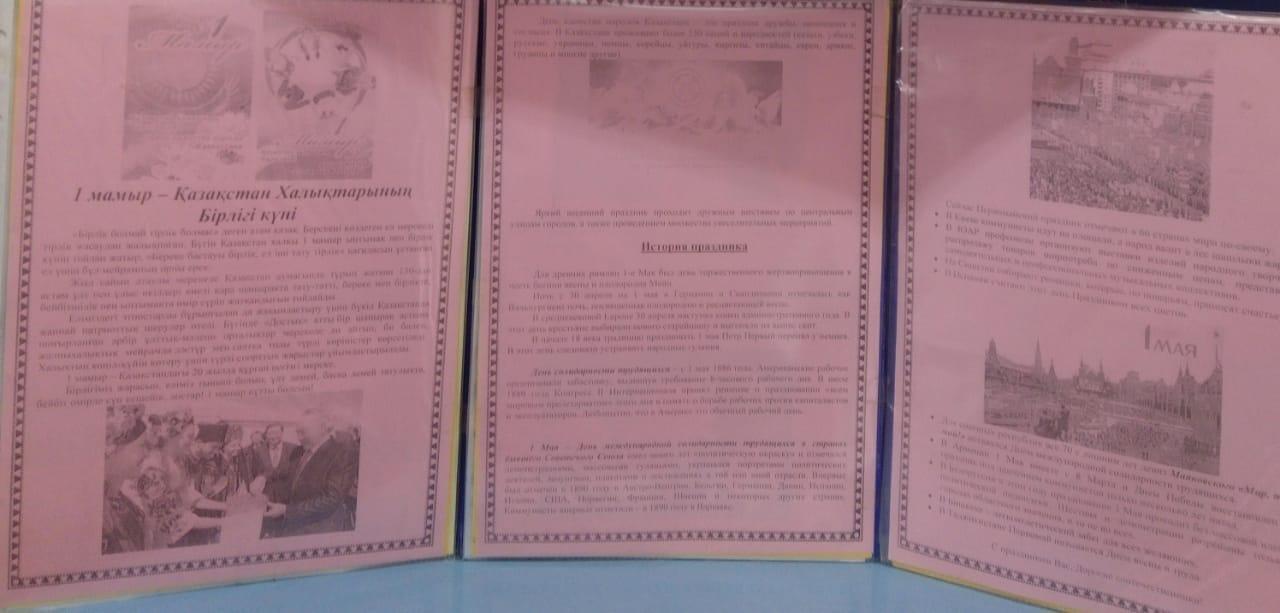 Бұл 150-ден астам ұлттар мен ұлыстар тұратын елде бейбіт өмір сүру үшін өте қажет достық, түсіністік және келісім күні. Мектеп кітапханасы ш. к. Айтжанова және орыс тілі мен әдебиеті пәнінің мұғалімі Р.Р. Гайсина 6"А" сынып оқушысы Хаустов-Соколов Ярославпен бірге осы тақырып бойынша бейнероликтер дайындады. Алдағы мерекемен құттықтаймыз, мамыр айының бірінші күнінде нәзік күн сіздің өміріңізді жарықтандырып, жаңа еңбек жетістіктеріне шабыт берсін. Сізге бейбітшілік, көңілді және қуанышты көңіл-күй, жаныңызда мәңгілік көктем тілейміз.