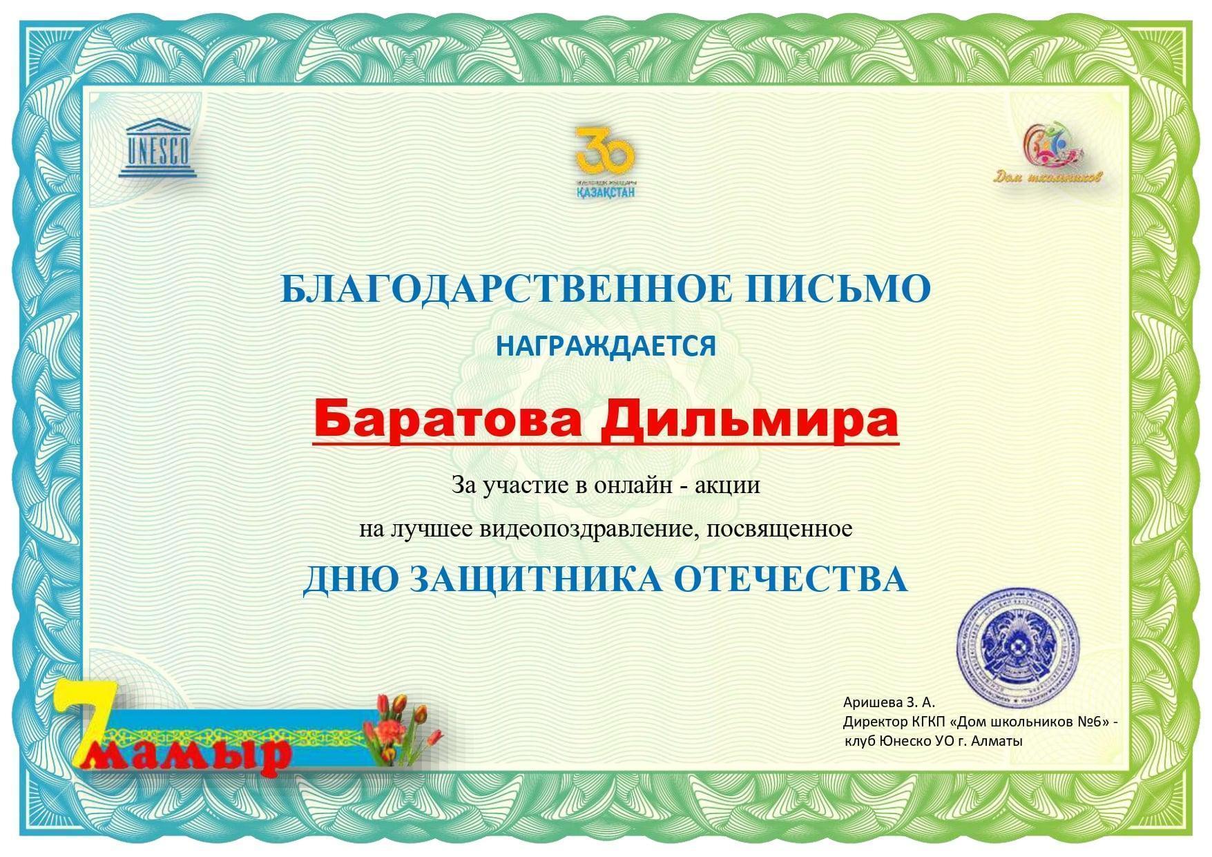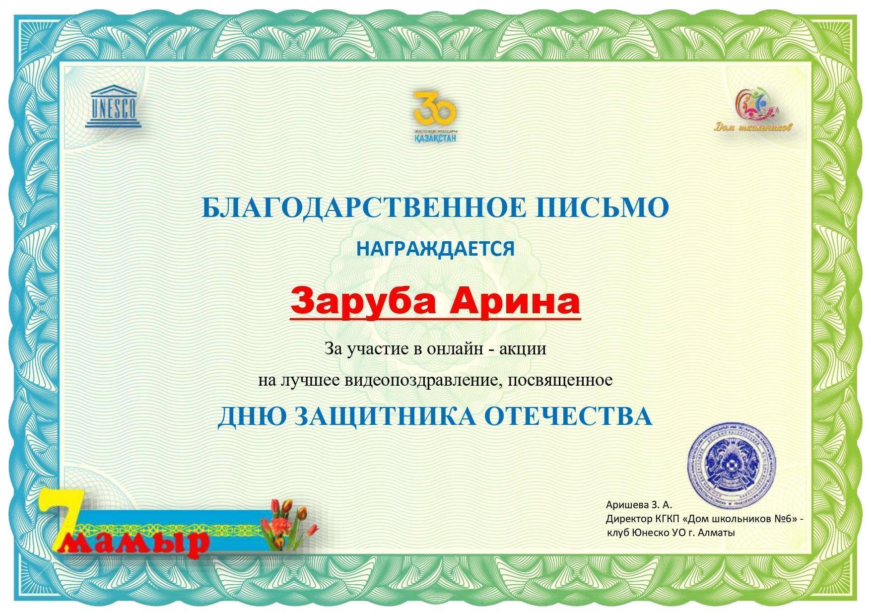 22 мамыр 2021 0 1 2 3 4 5 Мектеп оқушылары Отан қорғаушылар күніне арналған бейне құттықтау онлайн-акциясына белсенді қатысты!!! Учащиеся школы приняли активное участие в онлайн-акции видеопоздравление ко ДНЮ ЗАЩИТНИКА ОТЕЧЕСТВА!!! Осы беттің QR-коды:QR-код этой страницы: