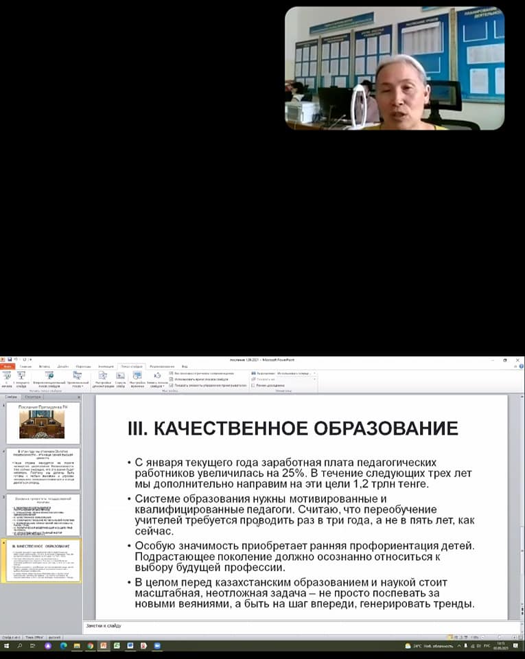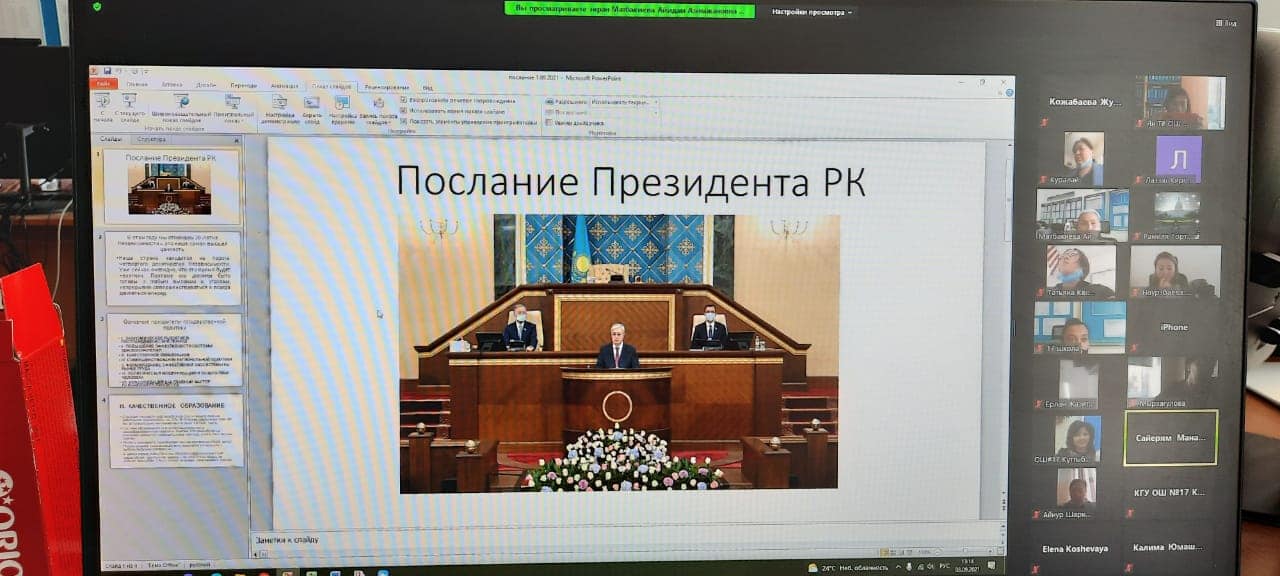 Бүгін мектептің педагогикалық кеңесінде ҚР Президентінің 01.09.2021 ж. жыл сайынғы Халыққа Жолдауы талқыланды. Сегодня на педагогическом совете школы прошло обсуждение ежегодного Послания Президента РК народу от 01.09.2021г.