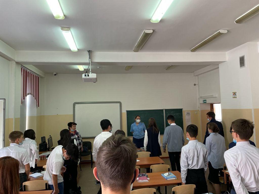 Встреча учащихся 7-11-х классов со старшим прокурором отдела прокуратуры Турксибского района. 7-11 сынып оқушыларының Түрксіб ауданының прокуратура бөлімінің аға прокурорымен кездесуі.