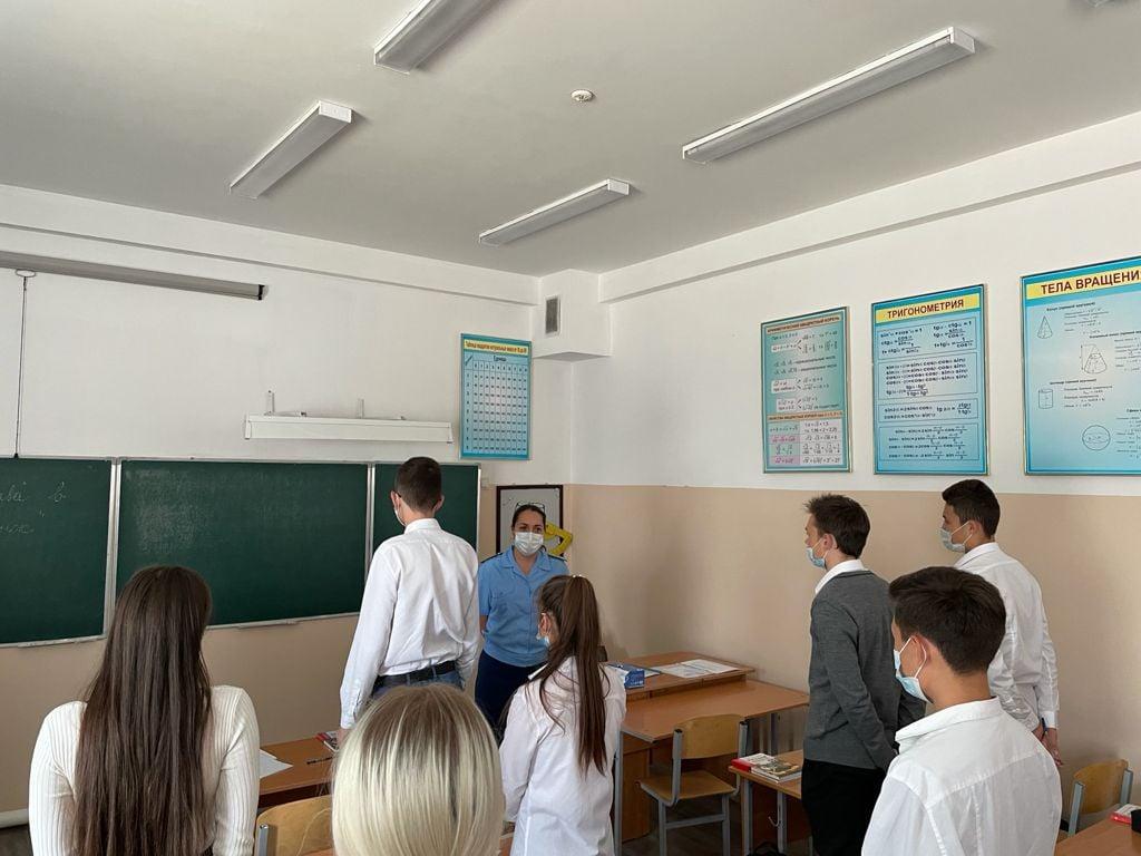 Әңгіме барысында М. в. Агеева оқушыларға олардың құқықтары мен міндеттерін қолжетімді түрде түсіндіріп, кешкі сағат 21.00-ден кейін заңды өкілдің еріп жүруінсіз көшеде бола алмайтындығын, темекі шегудің зияны, жол қозғалысы ережелерін сақтау қажеттілігі туралы еске салды.