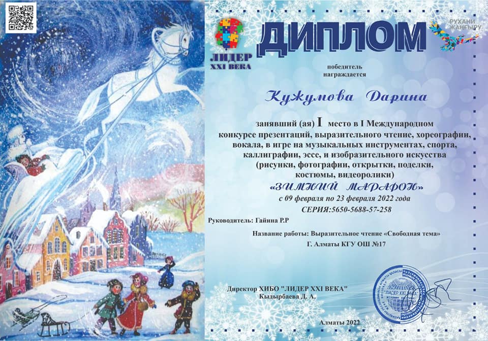 "21 ғасыр көшбасшысы" халықаралық инновациялық орталығы 1 "қысқы марафон" халықаралық шығармашылық байқауы.Международный инновационный центр "Лидер 21 века" 1 международный творческий конкурс "зимний марафон".