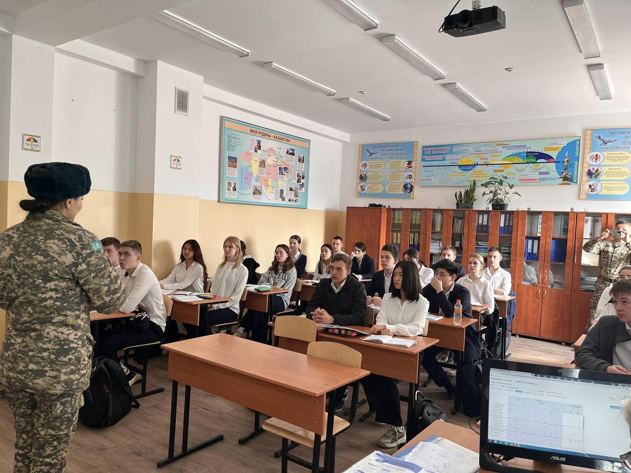 № 17 ЖОББМ КММ-де 10-11 сынып оқушыларының ҚР Құрлық әскерлері Әскери институтының өкілдерімен кездесуі өтті.В КГУ СОШ #17 прошла встреча учащихся 10-11-х классов с представителями Военного института сухопутных войск РК.