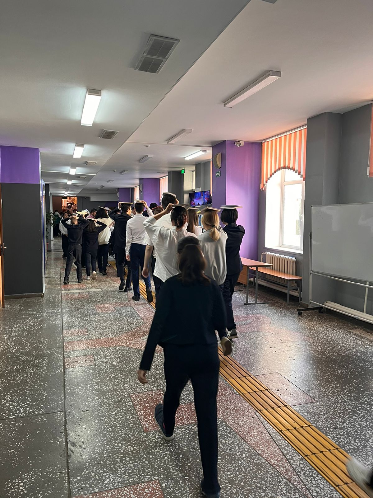 Жалпы сейсмикалық жаттығулар оқушылармен және мектеп қызметкерлерімен өтті. Мектеп оқушылары мен қызметкерлері эвакуациялау жоспарына сәйкес эвакуацияланды. Общая сейсмотренировка прошла с учениками и сотрудниками школы. Учащиеся и сотрудники школы эвакуировались согласно плану эвакуации.