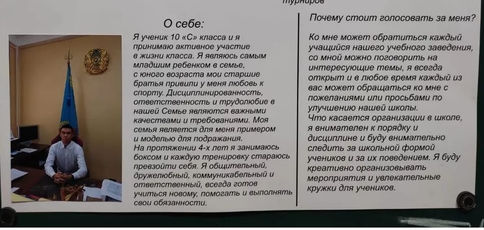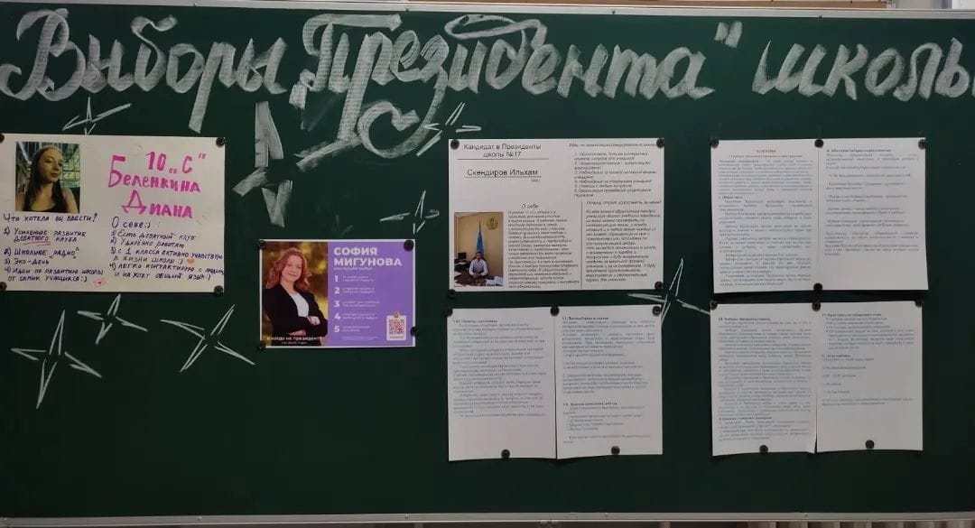 25.09.2023 По итогам голосования Президентом школьного самоуправления становится Еленкина Диана, Скендиров Ильхам становаится Уланбасшысы школы, Вице президент- Мигунова София, поздравляем!