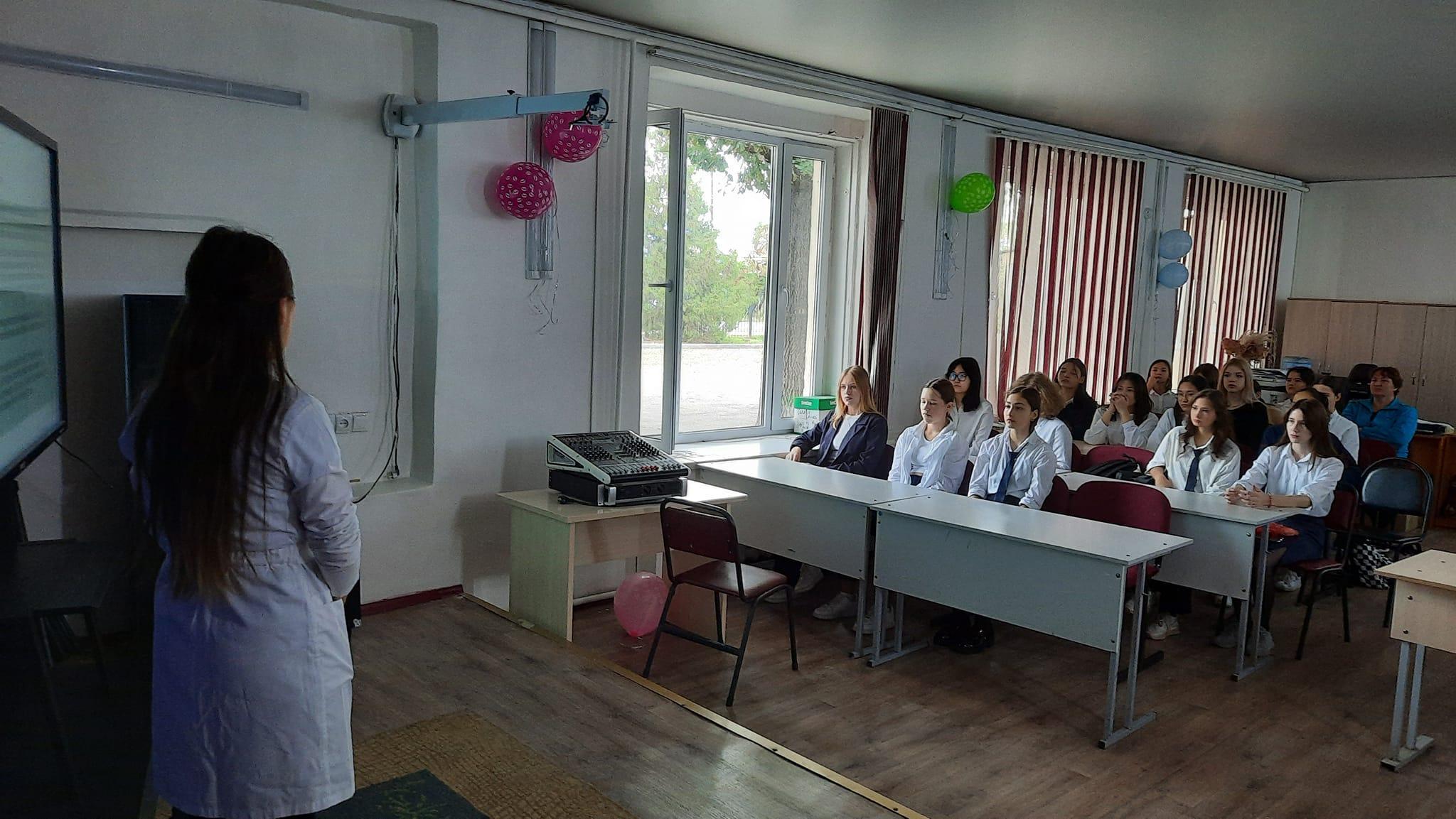 Бүгін №19 емхананың гинекологы Батырбекова Нұргүл Нәбиевнамен "Қыздарға жыныстық тәрбие беру" "Ерте жүктіліктің алдын алу" тақырыбында 8 сынып қыздарымен кездесу өтті. Қыздар осы іс-шараға белсенді қатысып, осы тақырып бойынша көптеген сұрақтар қойып, жауап алды.