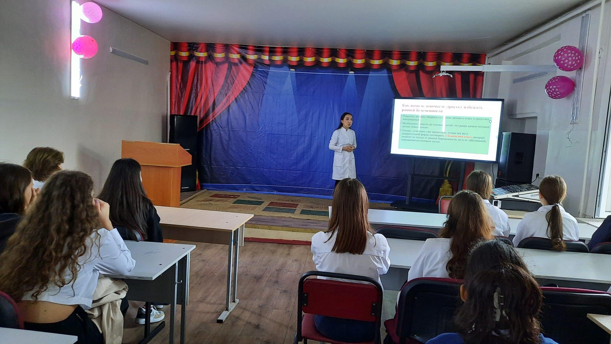 Сегодня была проведена встреча девочек 8-х классов с гинекологом поликлиники №19 Батырбековой Нургуль Набиевной на тему "Половое воспитание девочек" "Профилактика ранней беременности". Девочки приняли активное участие в данном мероприятии и задали много вопросов по данной тематике.