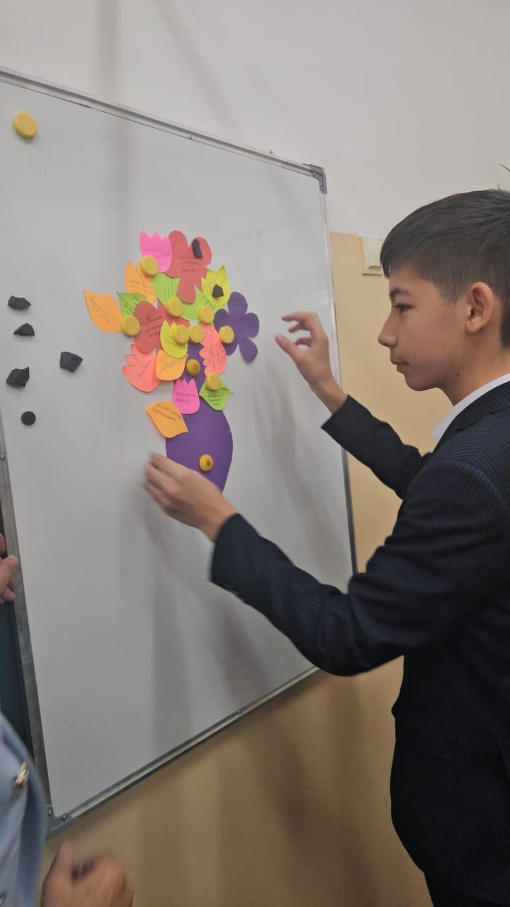 № 17 ЖББМ КММ-де тәжірибе алмасу мақсатында 9Б сыныпта мұғалім З. С. Құрманғалиевамен әдебиет сабағы өткізілді. Сабақтың құрылымы танымдық іс-әрекеттің белсенді формаларын-тақырыпты ашуға әр оқушының қатысуын қамтамасыз етуге мүмкіндік беретін топтық жұмысты қолдануды ескере отырып құрылған.