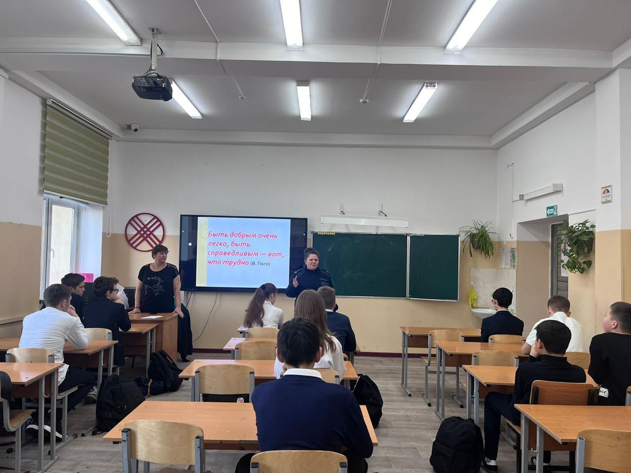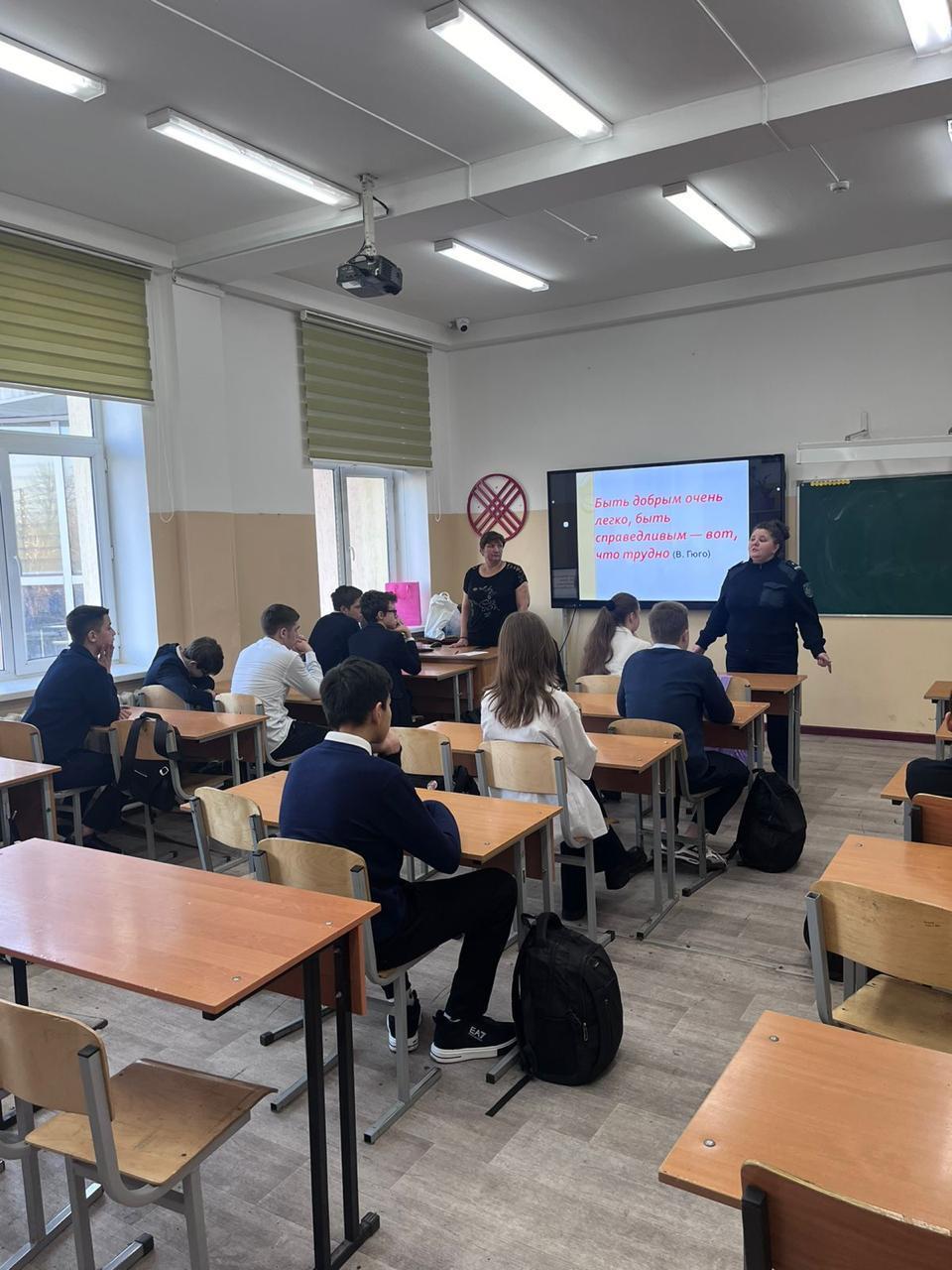 09.01.2025г инспектором ОЮП майором полиции Джембабаевой Марией Евгеньевной была проведена беседа на тему «Разрешено законом» (о правилах поведения несовершеннолетних на улицах, в общественных местах, в быту) среди учащихся 4-6 классов. На беседе присутствовало 483 учеников.