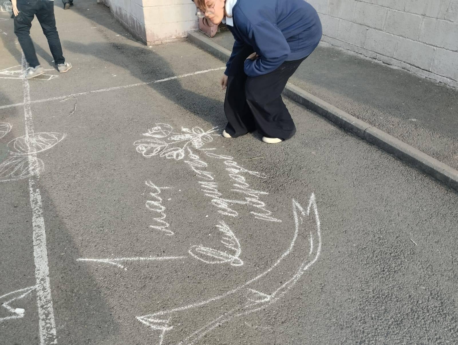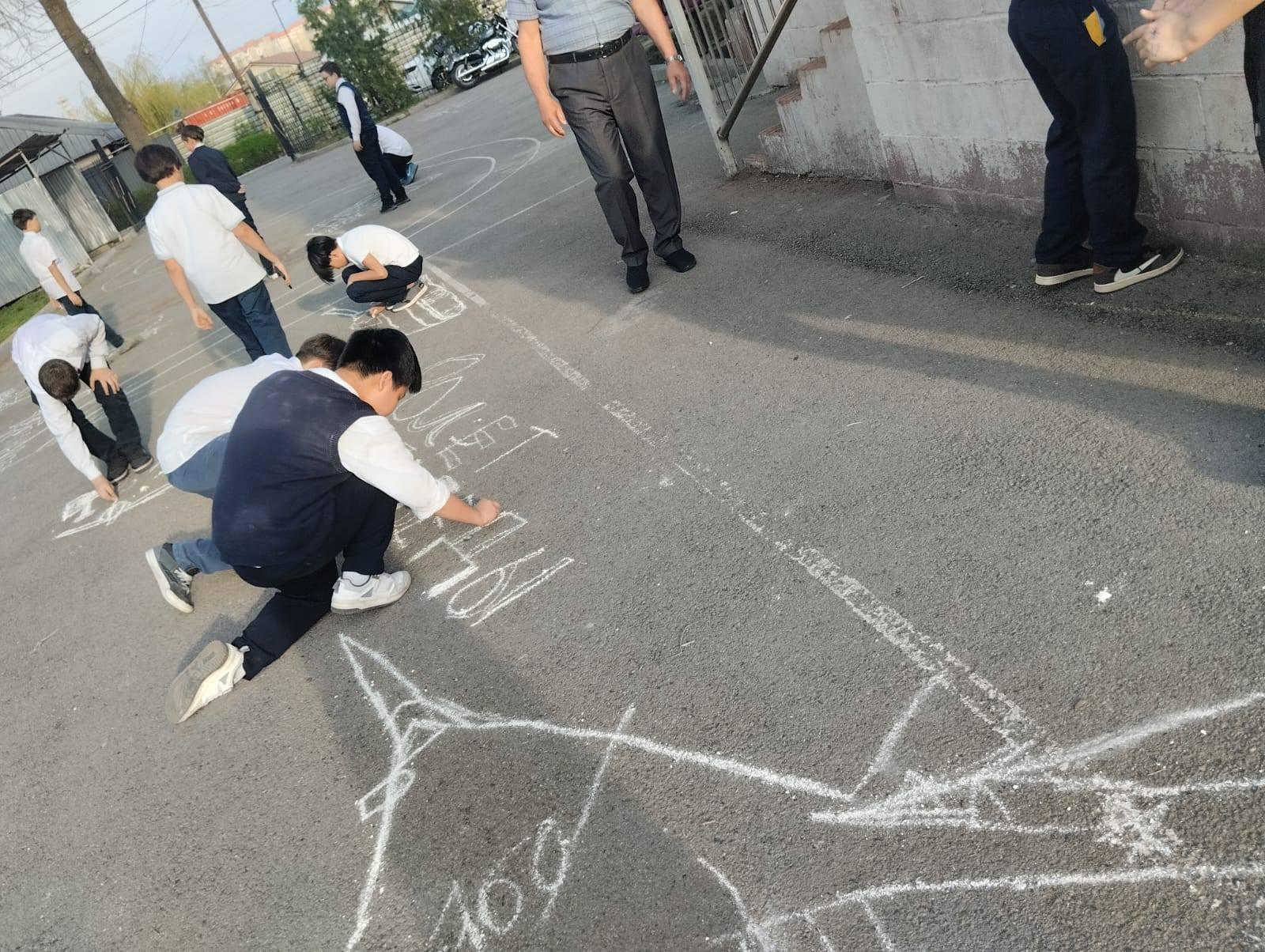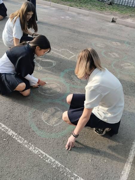ДЦ онкүндігі аясында көркем еңбек мұғалімдері 1 мамыр мен Ұлы Жеңістің 80 жылдығына арналған тақырыптық сабақ, асфальтта сурет салды. Оқушылар белсенді қатысты.