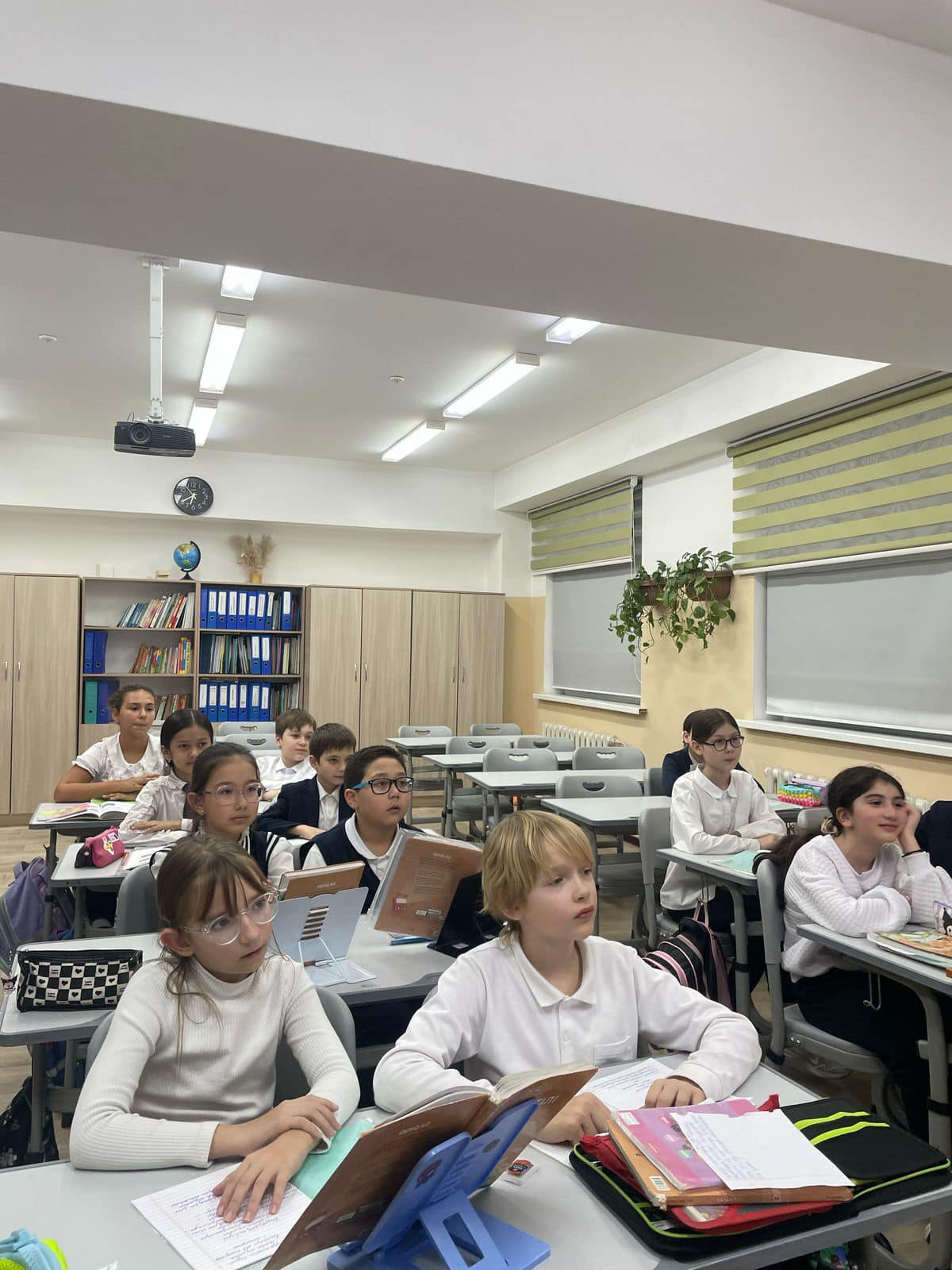 Қазақ тілінде оқытпайтын мектепте “Тілдік потфель” жобасы барысында “Күнделікті қазақ тілі” қолданысын кеңейту мақсатында бастауыш сынып оқушыларына “Қажымұқан” мультфильмін көрсетіп, бірге талқыладық.