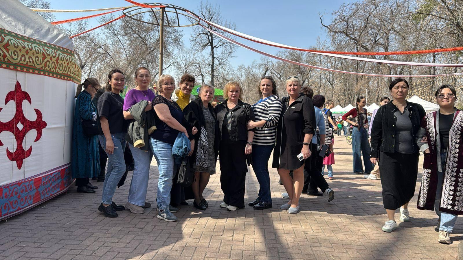Мұғалімдер Сейфулина саябағындағы Наурыз мерекесіне де қатысты. Учителя также приняли участие в празднике Наурыз в парке Сейфулина