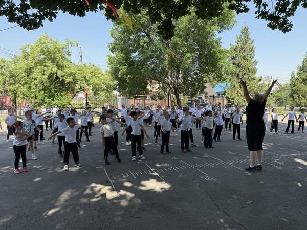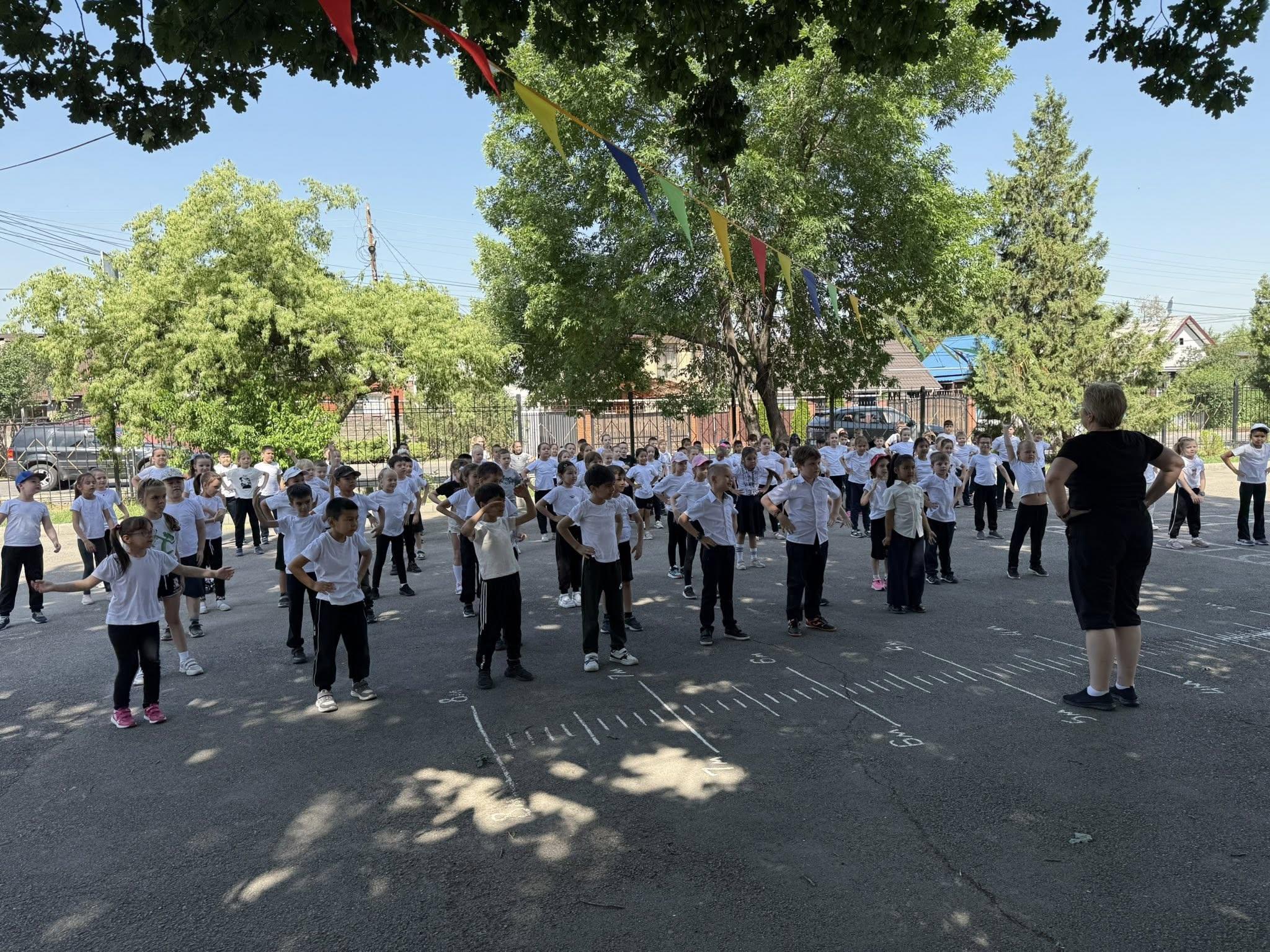 Бастауыш сынып оқушылары "Барлық алматылық таңертеңгілік жаттығулар"акциясына қатысты. Учащиеся начальной школы приняли участие в акции «Всеалматинская утренняя зарядка»