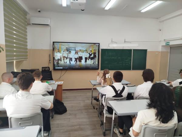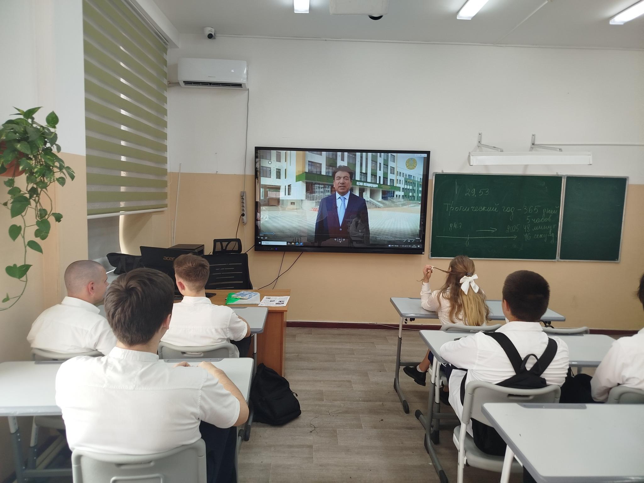 Ребята послушали поздравление Ғани Бейсембаева Министра Просвещения РК.
