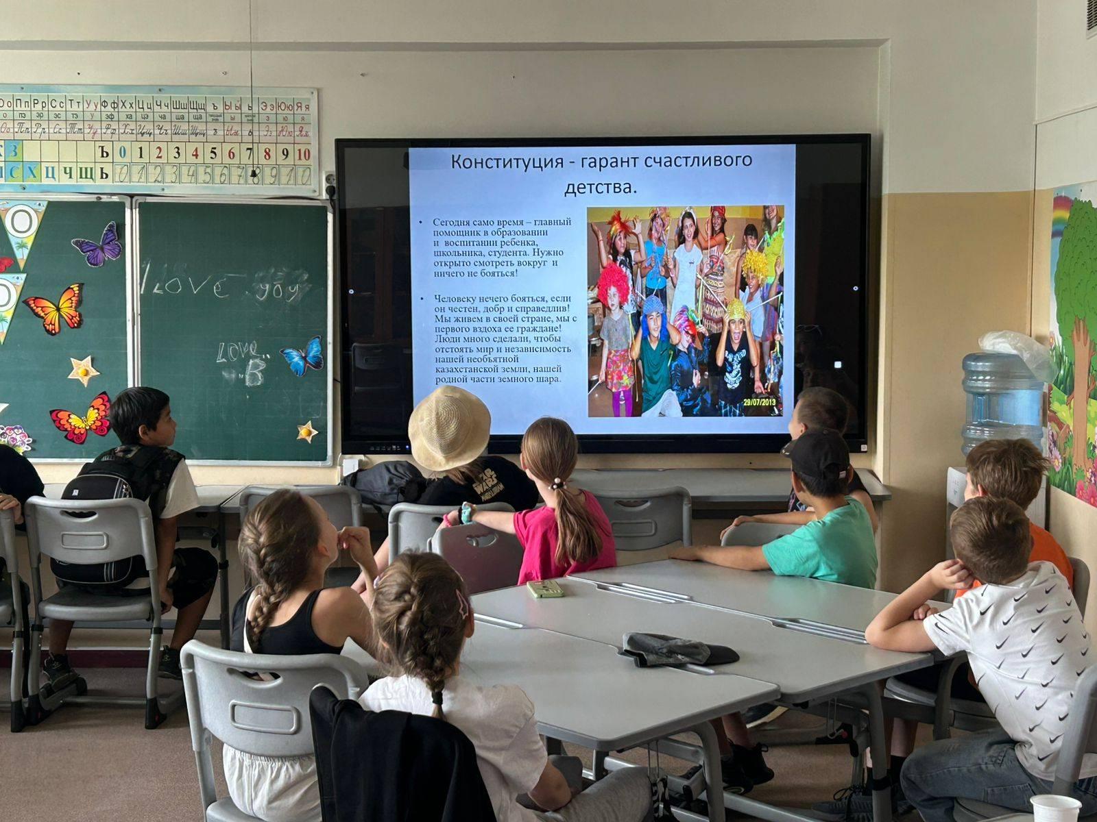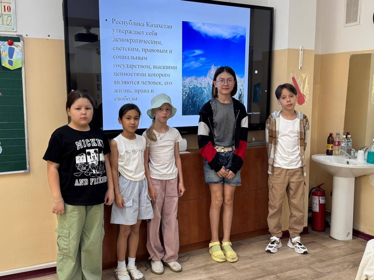 В лагере "Балдаурен" прошли познавательные и праздничные мероприятия, приуроченные к 30-летию Конституции Республики Казахстан. В рамках программы были организованы классные часы, тематические викторины и интерактивные игры, направленные на повышение правовой грамотности и патриотическое воспитание детей.