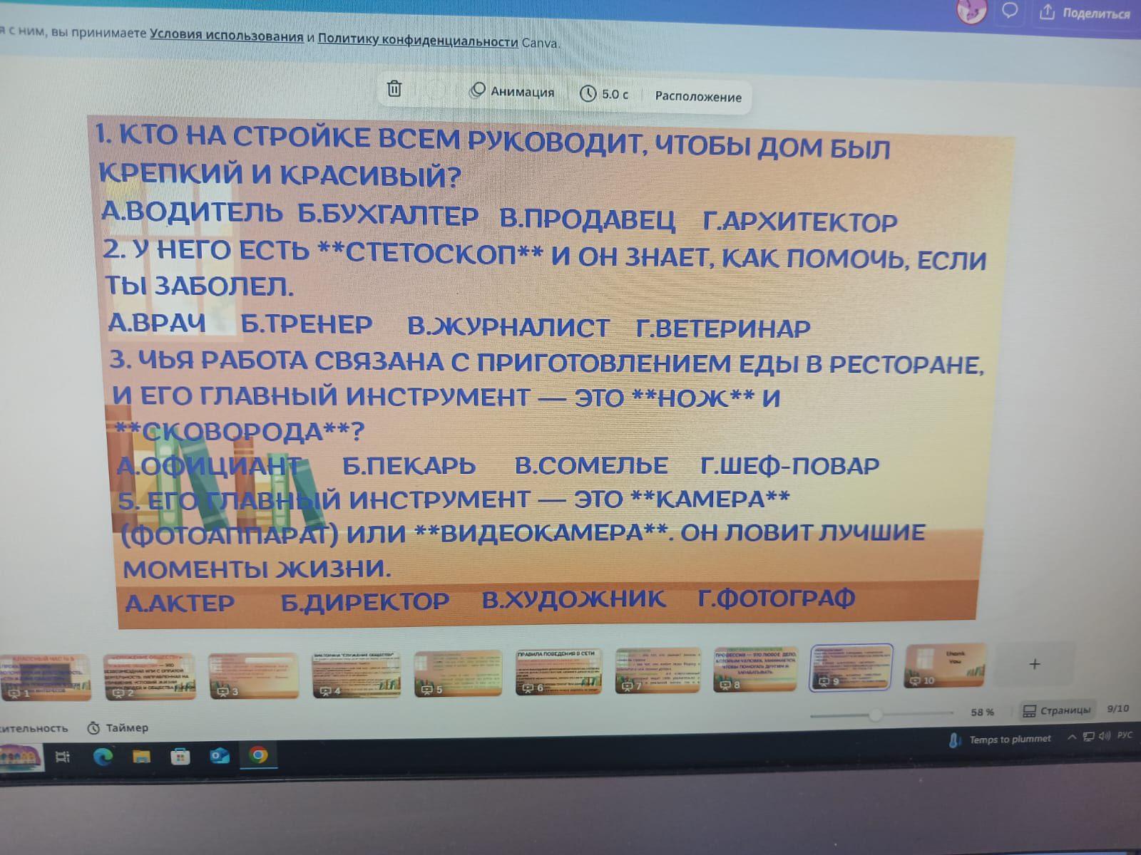 "Мамандық таңдауға кім және не әсер етеді" тақырыбында кәсіптік бағдар беру сабағы. Профориентационное занятие на тему" Кто и что влияет на выбор профессии"