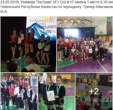 25 сәуір 2018 0 1 2 3 4 5 № 17 ЖОББМ КММ "Экстрим" командасы Черлидингтен Қазақстан Республикасының 10-шы чемпионатында 1 орын алды.Команда "Экстрим" КГУ ОШ # 17 заняла 1 место в 10-ом Чемпионате Республики Казахстан по черлидингу. Осы беттің QR-коды:QR-код этой страницы: