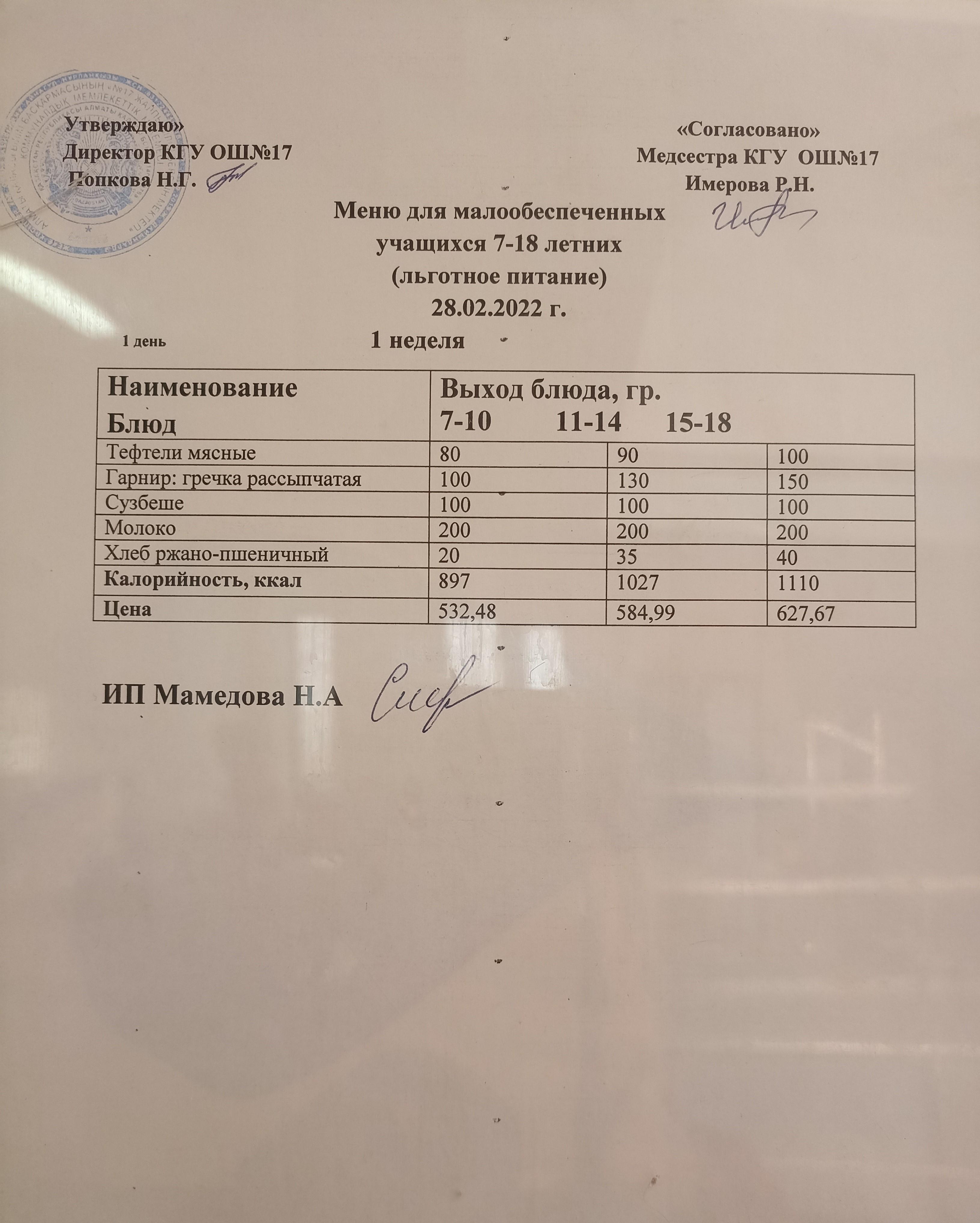 » Ас мәзірі 28.02.22. Меню 28.02.22