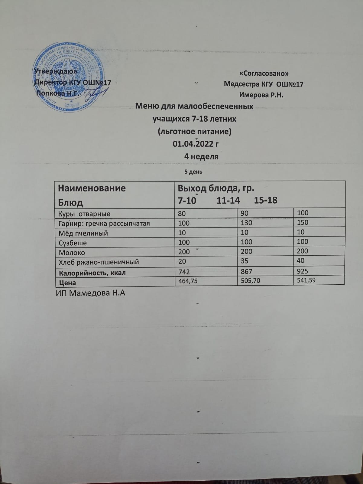 » Ас мәзірі 01.04.22. Меню 01.04.22