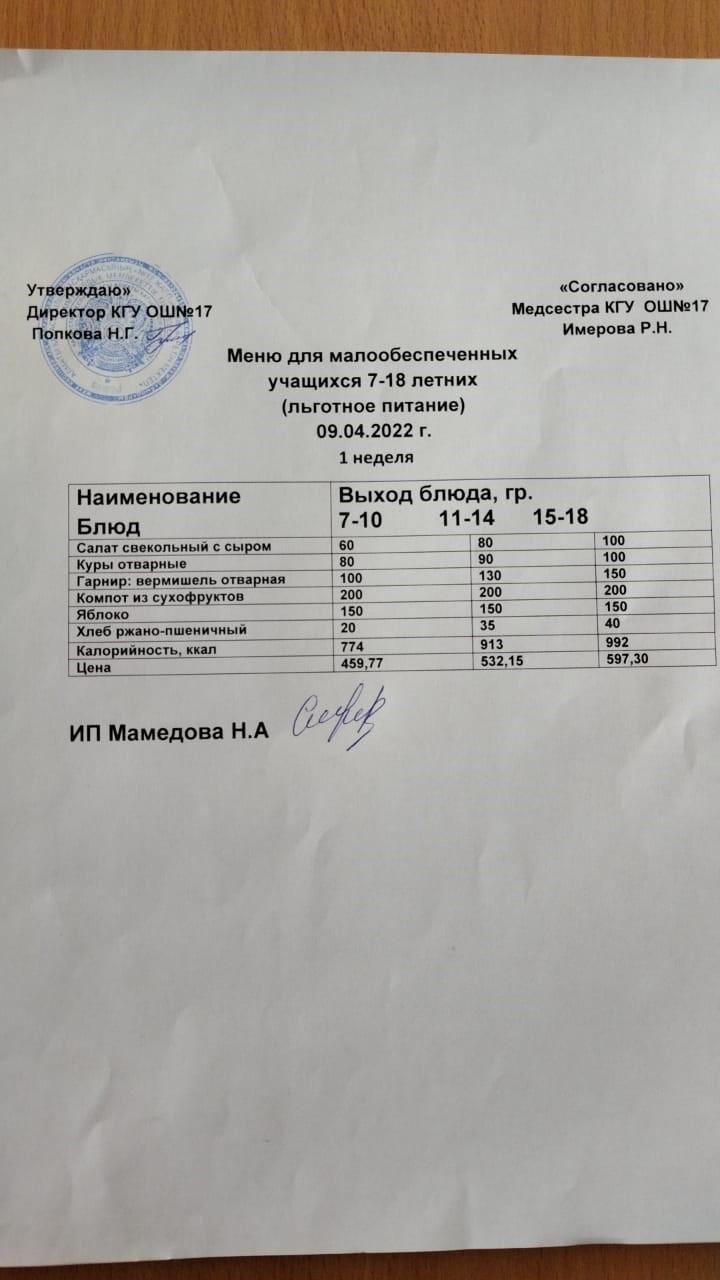 » Ас мәзірі 09.04.22. Меню 09.04.22