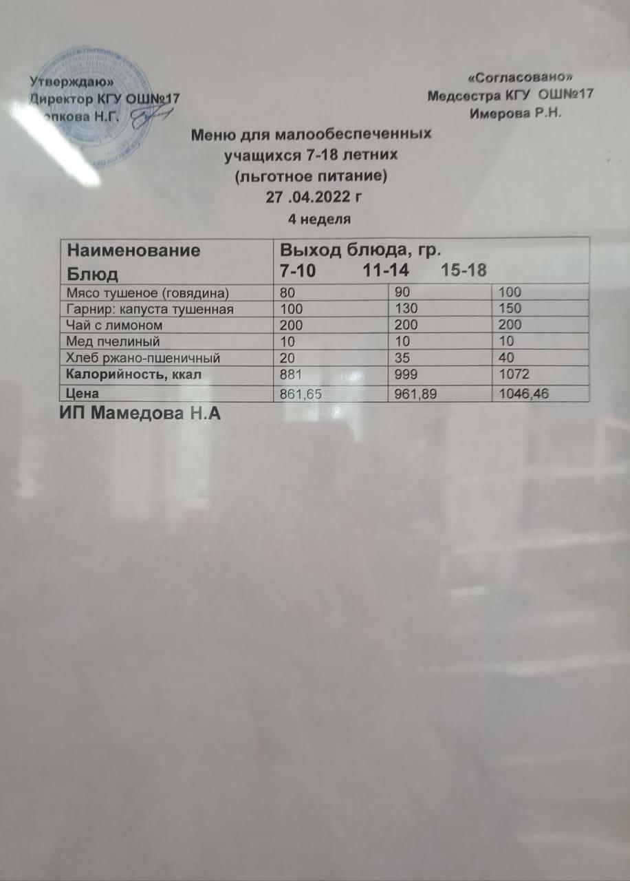 » Ас мәзірі 27.04.22. Меню 27.04.22