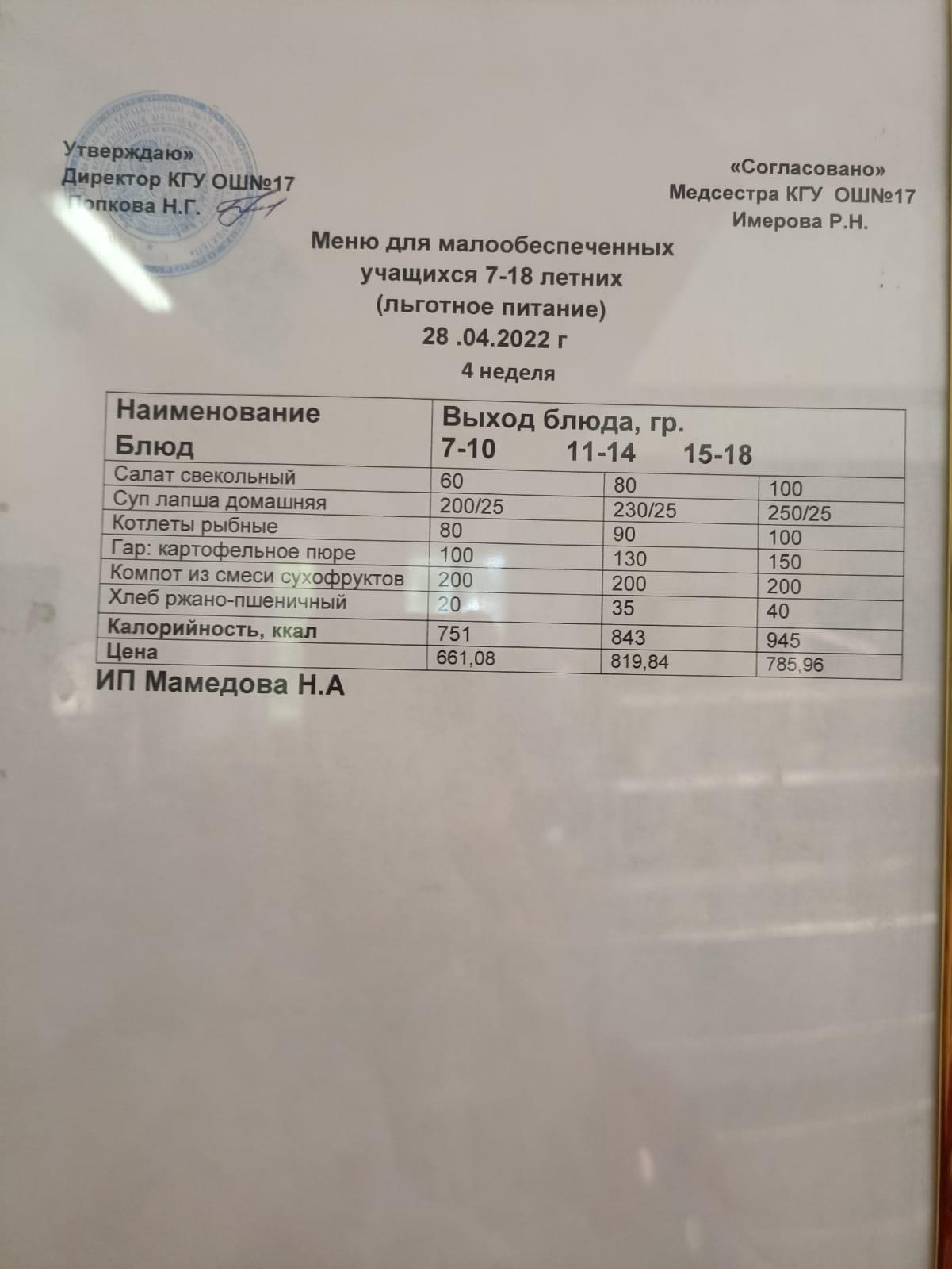 » Ас мәзірі 28.04.22. Меню 28.04.22