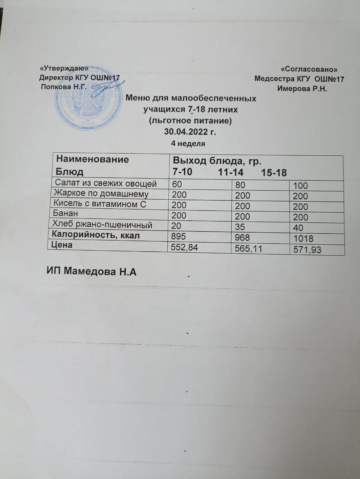 30 сәуір 2022 0 1 2 3 4 5 Ас мәзірі 30.04.2022. Меню 30.04.2022 Осы беттің QR-коды:QR-код этой страницы: