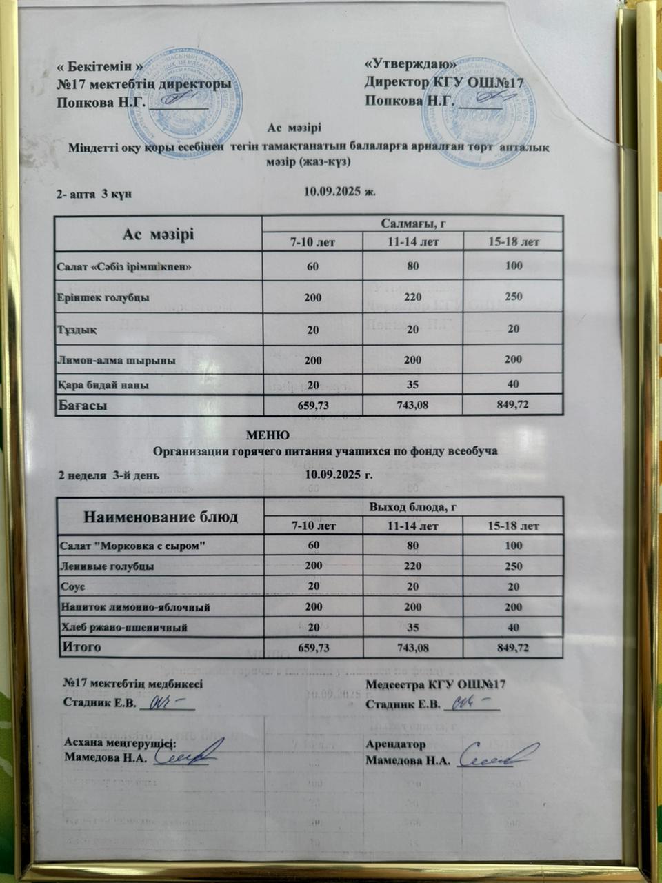 Ас мәзірі 28.09.2023ж. Меню 28.09.2023г.