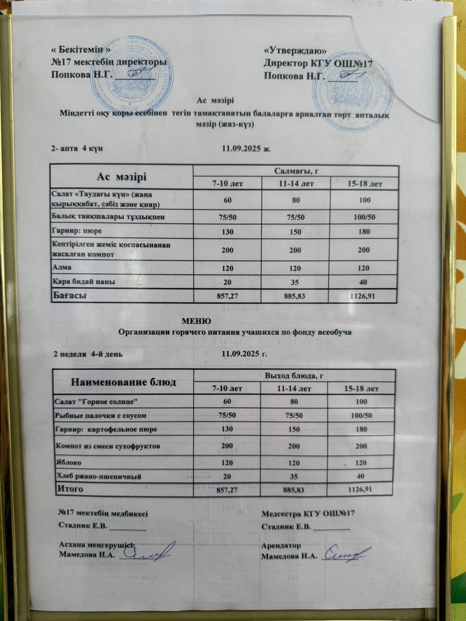 Ас мәзірі 28.09.2023ж. Меню 28.09.2023г.