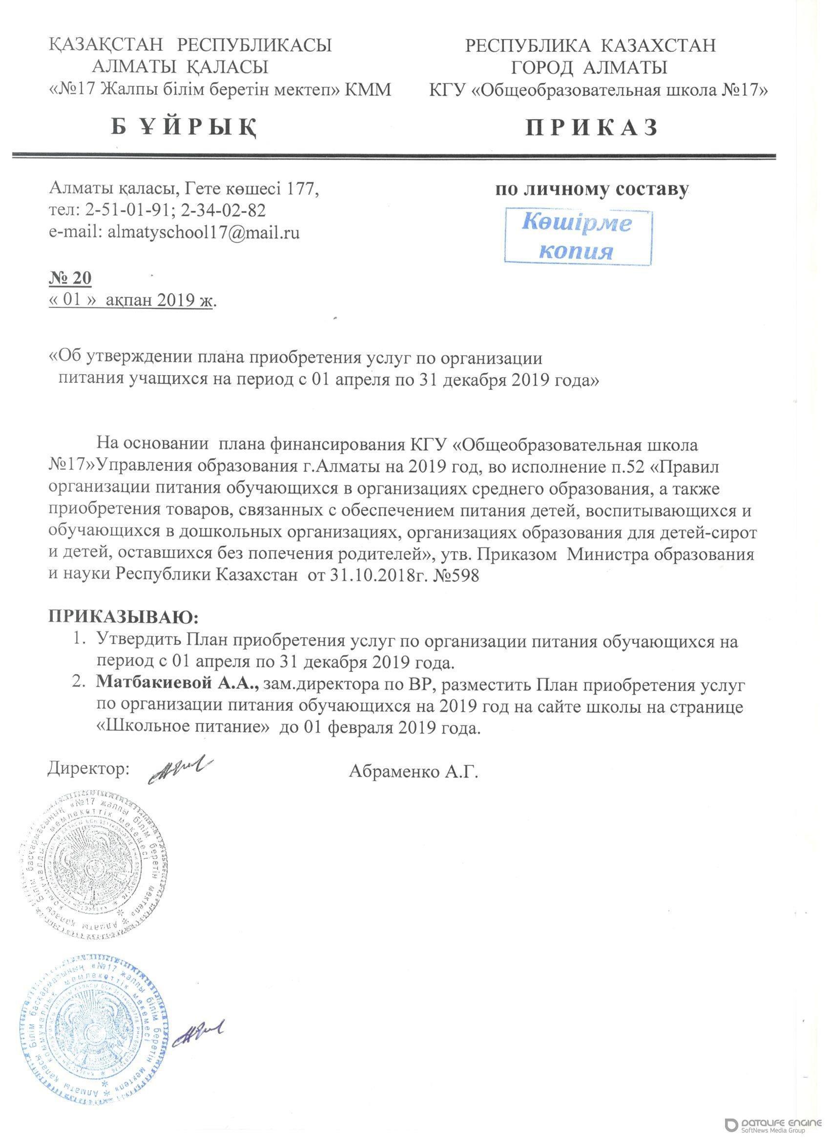 01 ақпан 2019 0 1 2 3 4 5 "Мектепте тамақтануды ұйымдастыру туралы" бұйрық. Приказ "Об организации питания в школе" Осы беттің QR-коды:QR-код этой страницы: